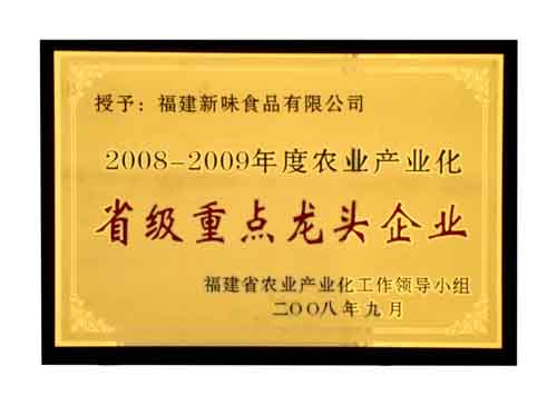 熱烈慶祝我司獲得“2008-2009福建省農(nóng)業(yè)產(chǎn)業(yè)化省級重點(diǎn)龍頭企業(yè)”榮譽(yù)