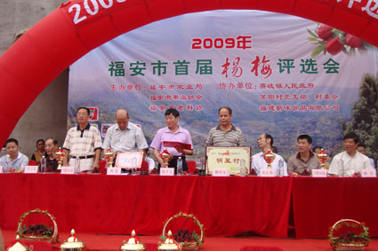 2009年06月15日,福安首屆楊梅評選活動在蘇陽舉行,本次評選會的主辦單位是福安市農(nóng)業(yè)局、福安市果業(yè)協(xié)會、福安市老科協(xié),協(xié)辦單位有賽歧鎮(zhèn)人民政府、蘇陽村民委員會與福建新味食品有限公司。此次評選共有17個鄉(xiāng)鎮(zhèn),53位農(nóng)民進行參選,經(jīng)專家評選精挑細選,共產(chǎn)生2009年“新味杯”楊梅優(yōu)質果評選金獎3名,優(yōu)質獎5名,鼓勵獎5名。并設立禮品200份,禮品包含“蘇陽紅”金獎楊梅一籃與“新味牌”茶香蜜餞一提。金獎極品"蘇陽紅",大的一粒55克左右,味美汁多,盛是可口。