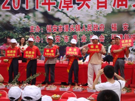 7月29日,在福安市潭頭鎮(zhèn)“首屆芙蓉李節(jié)”交流會(huì)上,果農(nóng)們紛紛“秀”出自家的芙蓉李。專家現(xiàn)場(chǎng)評(píng)選出芙蓉李優(yōu)質(zhì)果品和芙蓉李加工先進(jìn)企業(yè)。我司芙蓉李種植基地種植出的芙蓉李被評(píng)為二等獎(jiǎng),并榮獲芙蓉李加工先進(jìn)企業(yè)。我司董事長(zhǎng)現(xiàn)場(chǎng)與潭頭鎮(zhèn)芙蓉李協(xié)會(huì)簽訂采購(gòu)合約。